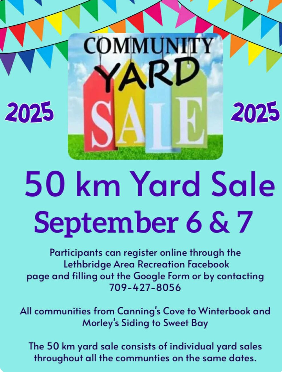 Come out to our original and longest running yard sale in NL. 50kms from Cannings Cove to Winterbrook and Morleys Siding to Sweet Bay.